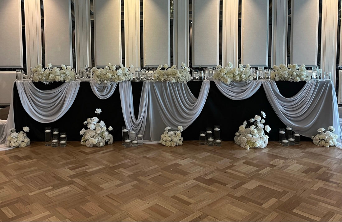 Eve everlasting floral ground piece. Floral can be placed on ground in front of bridal table mixed with candles and our eve floral low, or place at base of arch.